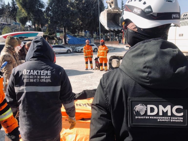 HATAY, TURKEY— -- Dompet Dhuafa melalui Disaster Management Center (DMC) turut tergabung dalam Tim Indonesia Search and Rescue (INASAR) dan menyisir lokasi reruntuhan gempa di Turki.